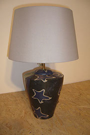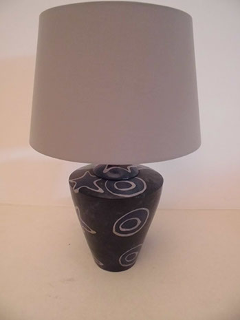 Art: Batiklampe in dezenten Grau-und Blautönen